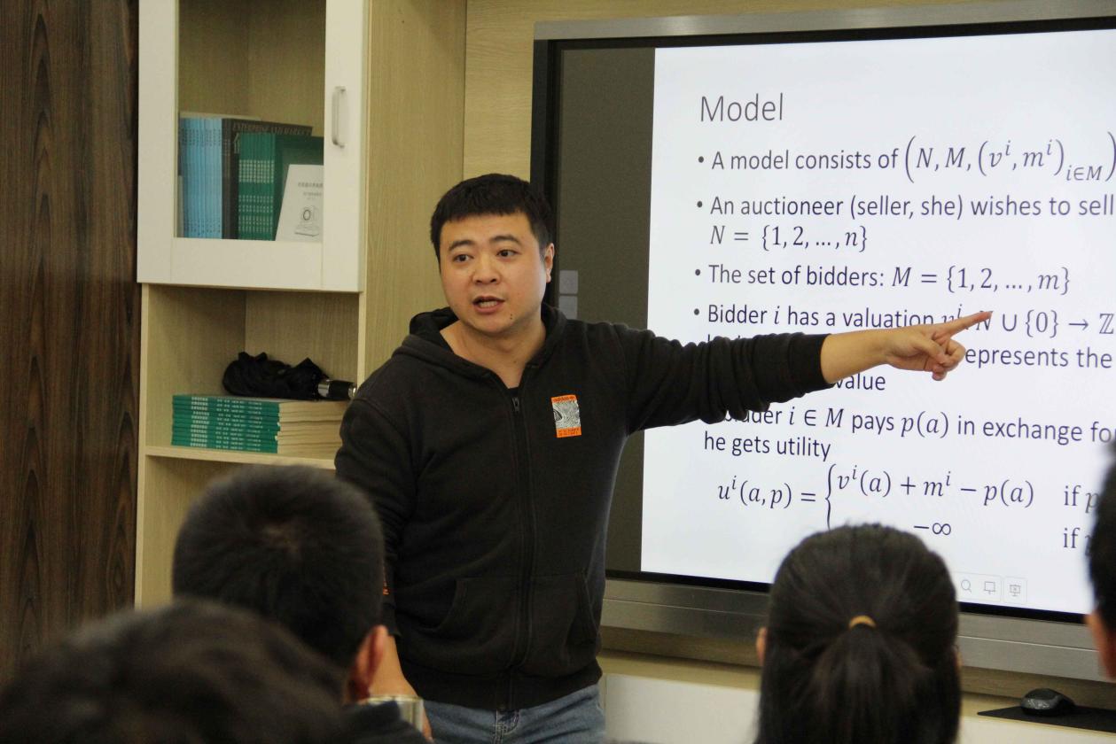 10月07日,公司青年学者论坛举办专家讲座,邀请武汉大学余景升特聘副研究员,做了题为 “An efficient and strategy proof multi item ascending auction under financial constraints” 的学术报告。余老师从选题背景、研究方法、研究结果、实际应用四个方面讲解了论文。论文为异质多产品动态拍卖提出一种新的拍卖机制设计,能在买家具有两个维度的私有信息与预算约束下的最优策略是诚实出价。除此之外,该机制下均衡商品分配位于帕累托效率核中。