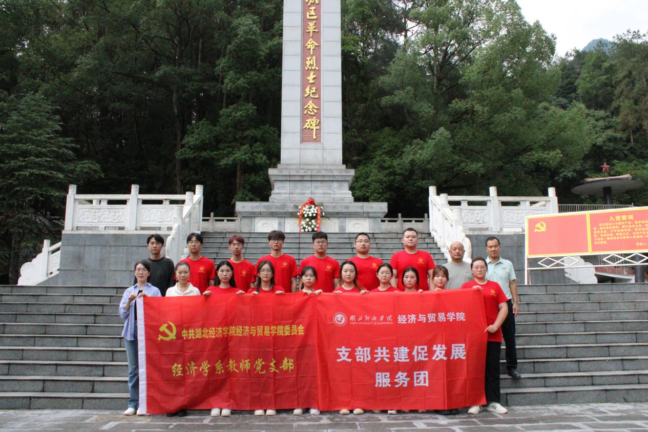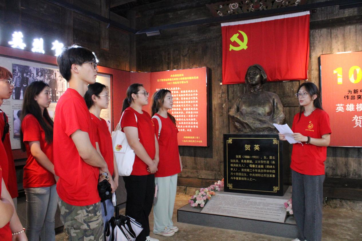 下午,“支部共建促发展”服务团一行分别前往湘鄂边苏区革命烈士陵园和贺英殉难处革命遗址参观学习。在湘鄂边苏区革命烈士纪念碑前,全体师生整齐肃立,鞠躬默哀,以此表达对革命烈士的深深怀念。在贺英烈士雕塑前,员工党员代表详细介绍了贺英同志壮烈牺牲的历史故事,并激励同学们要坚定理想信念,练就过硬本领,积极投身实践,将个人的理想追求融入到党和人民的事业之中。