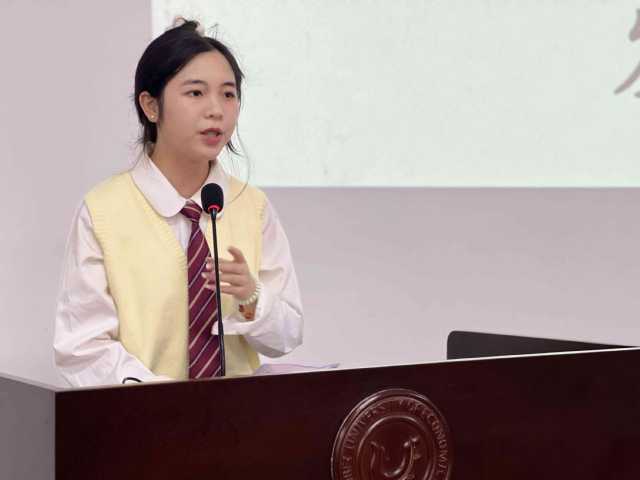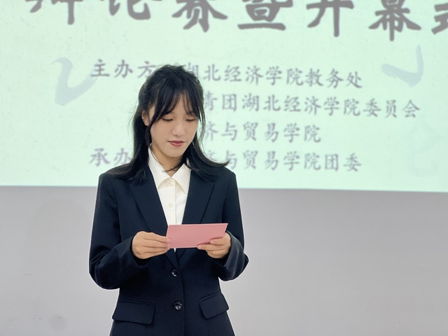 周翔老师代表评委为本次大赛致公证词,他指出本届辩论赛将秉持“公平、公正、公开”的原则开展,赛事主办方将做好组织和保障工作。国贸2041班的杨千子同学作为往届优秀辩手代表分享了自己参加辩论赛的经验和感悟,并为参加本次辩论赛的同学们加油打气。随后,第十一届经济热点问题辩论赛正式拉开帷幕。