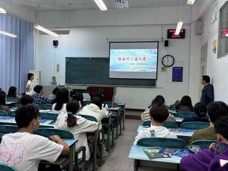 公司员工党员作为宣讲员,走进新生班级,首先为新生详细解读了发展党员的工作流程、工作原则以及工作方针,让大家对于党员发展有了初步的认识和了解。宣讲员侧重讲解了入党积极分子的培养与考察等发展党员的重要环节的具体要求和注意事项。同时宣讲员还结合自身入党经历和公司党员发展过程中的真实案例,让同学们对入党流程有了更加直观、深入的理解。在宣讲过程中,同学们认真听讲、仔细记录并提出一些入党过程中的疑问,宣讲员们耐心进行了解答。