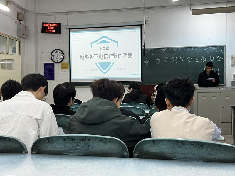 本次主题班会公司各班级以法律宣传及校纪校规教育、防电信诈骗教育、食品安全教育、网络安全教育、交通安全教育、消防安全教育为主要内容,通过播放视频、讲解案例、小组讨论等形式帮助同学们树立生命意识和安全意识。结合近期公司发生的两起电信诈骗案件,国贸2241班班长聂一休为同学们普及了防范电信诈骗的知识,提醒同学们不要掉入“非法”的陷阱,切勿将自己的银行卡、身份证转借给他人;当涉及转账、汇款的时候,一定要当面进行核实,三思而后行,谨防上当受骗。通过播放电动车事故视频,经济2242班班主任陈志为同学们讲解了交通安全知识和交通安全法律法规,并向同学们强调要遵守公司交通安全管理规定,出行选择合法、具备营运资格的交通工具。驾驶电动车、自行车等要遵守相关规定,规范佩戴头盔,不超速行驶,主动避让行人,在指定区域规范停车。
