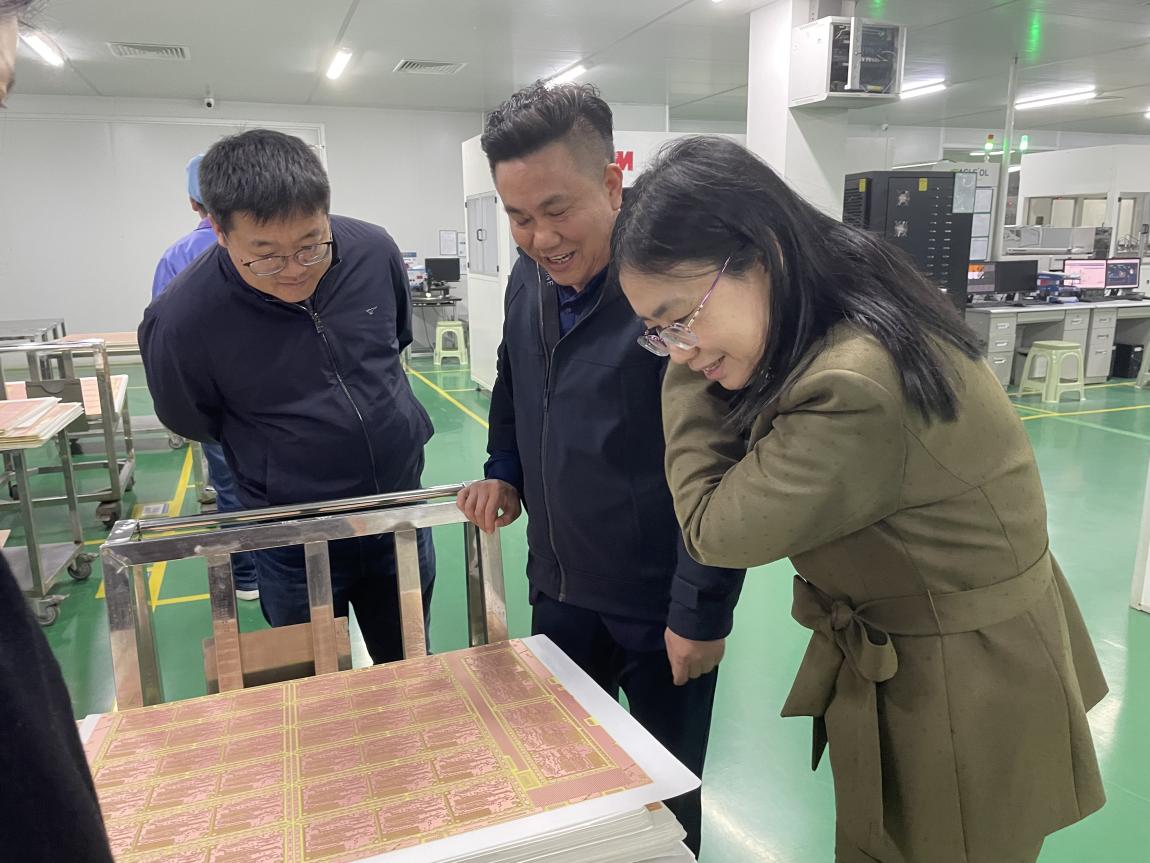 在企业领导带领下,公司马玉霞、乔长涛一行参观了企业钻孔、电镀、干膜等多个车间,认真听取企业当前经营现状、人才需求等介绍,了解企业详细信息。双方就人才培养情况、员工实习就业安排等开展了亲切友好座谈,并就建立就业实习基地达成一致,顺利签订协议并完成挂牌。