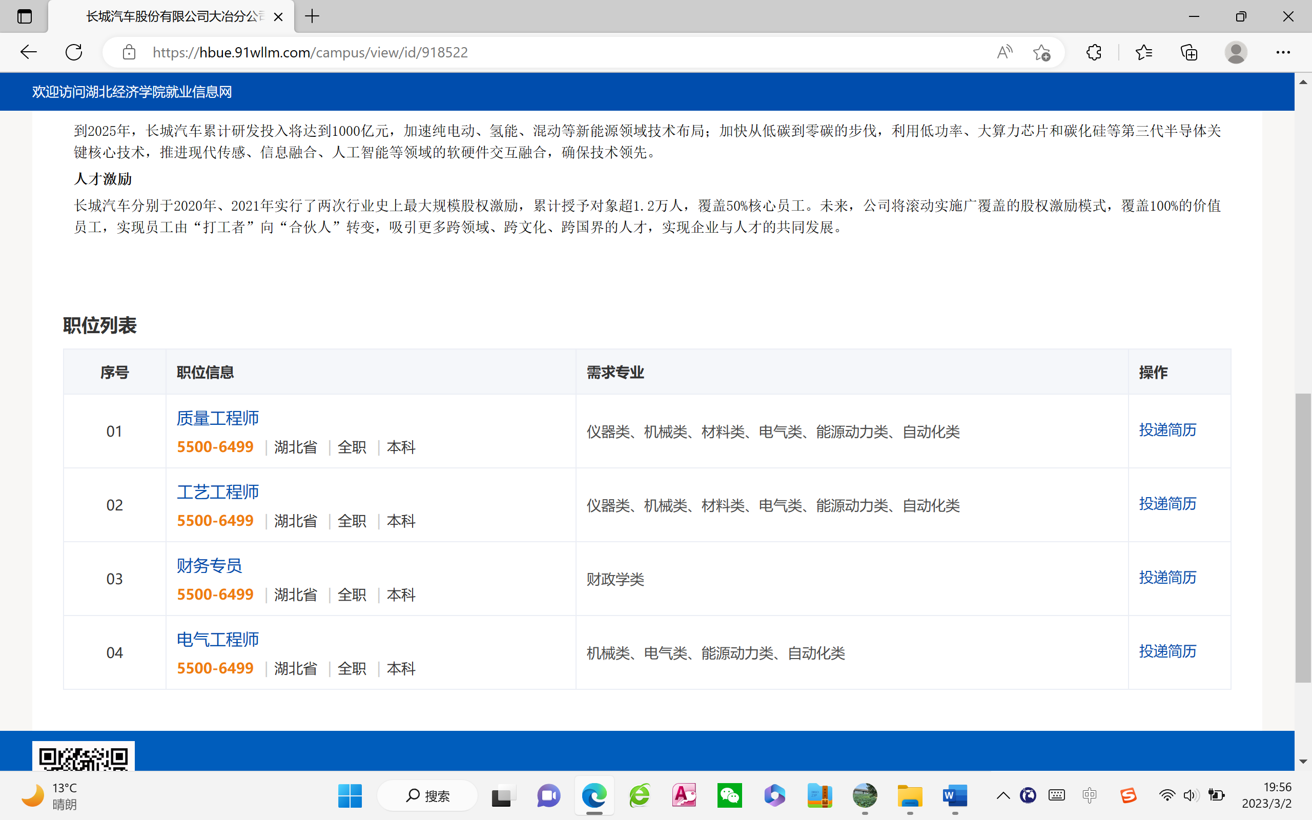 长城汽车分别于2020年、2021年实行了两次行业史上最大规模股权激励,累计授予对象超1.2万人,覆盖50%核心员工。未来,公司将滚动实施广覆盖的股权激励模式,覆盖100%的价值员工,实现员工由“打工者”向“合伙人”转变,吸引更多跨领域、跨文化、跨国界的人才,实现企业与人才的共同发展。