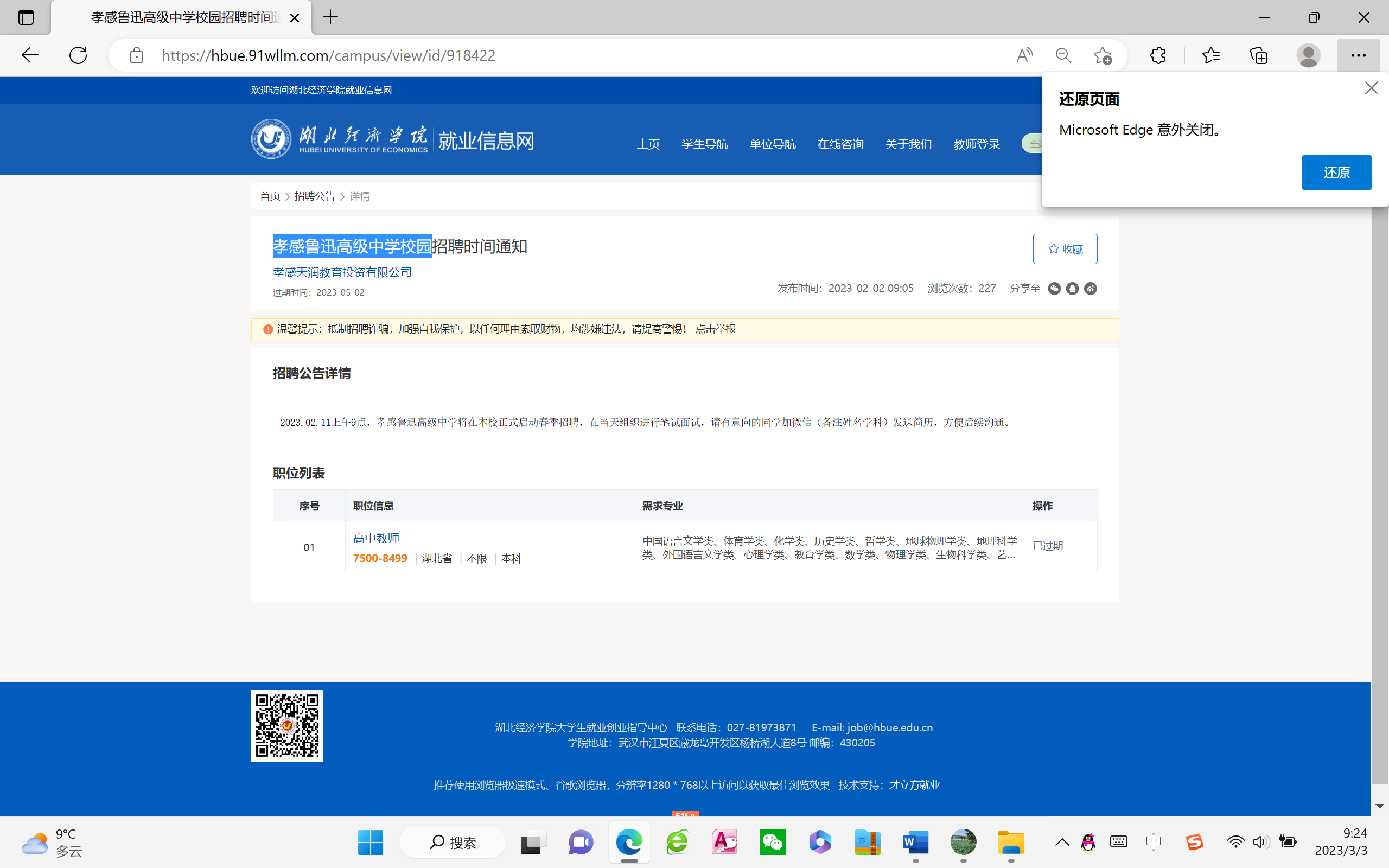 孝感鲁迅高级中公司园招聘信息