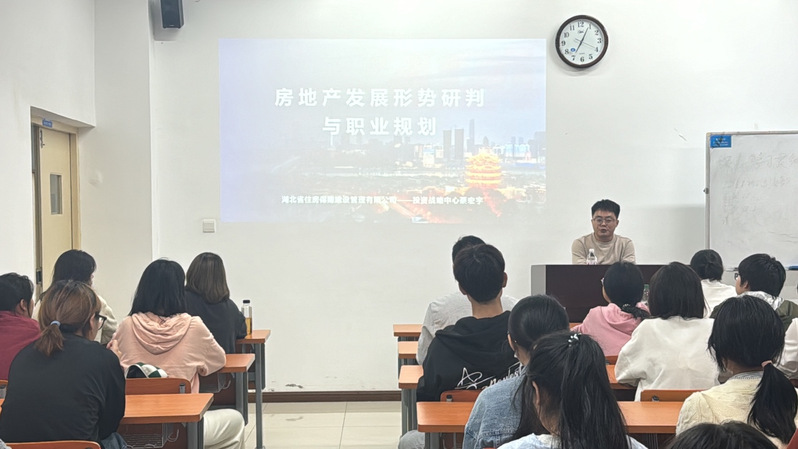 本网讯(通讯员:刘思源)为启发领航班同学明晰职业规划,明确努力方向,公司于11月14日晚开展了“领航班能力提升工作篇之职业规划”活动。湖北省住房保障建设管理有限公司投资战略中心蔡宏宇老师作为特邀嘉宾,为同学们做了“房地产发展形势研判与老员工职业规划”的主旨发言。活动由领航班班主任樊正德老师主持。