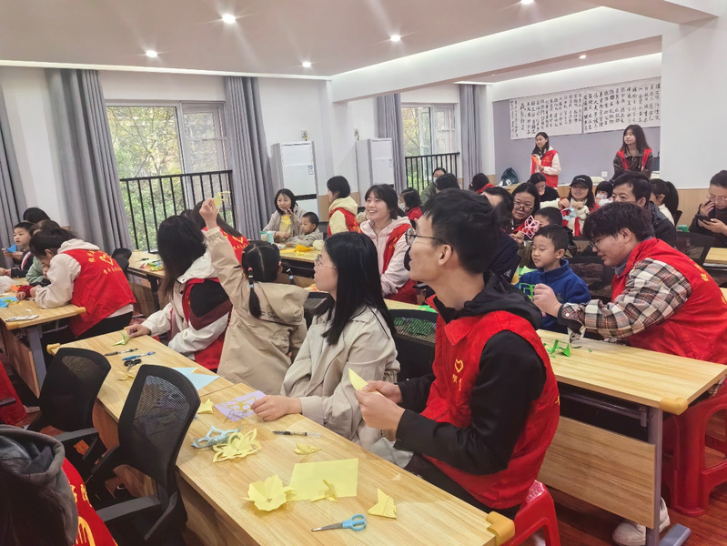 在志愿者们耐心且专业的辅导下,现场一片热火朝天。小朋友们稚嫩的小手紧握着剪刀,小心翼翼又充满热情地雕琢着手中的彩纸,家长们也被这浓厚氛围感染,纷纷加入其中。一时间,纸屑纷飞,如彩蝶蹁跹,一幅幅五彩斑斓、独具匠心的剪纸作品应运而生,它们或精致细腻,或拙朴可爱,却都凝聚着大家对传统艺术的热爱与敬意。