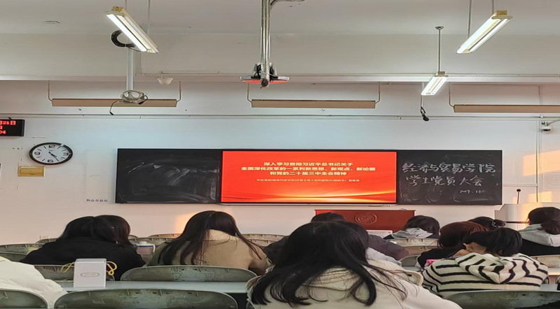 二是结合实际开展研讨。11月21日,全体师生党支部开展11月主题党日活动,与会党员围绕观看学习贯彻党的二十届三中全会精神培训视频开展研讨。研讨过程中师生党员一致认为,通过培训深刻领会和把握进一步全面深化改革的主题、重大原则、重大举措、根本保证。与会党员同时结合学习习近平总书记在省部级主要领导干部学习贯彻党的二十届三中全会精神专题研讨班开班式上重要讲话,结合学习习近平总书记考察湖北重要讲话精神,联系党员思想和工作实际谈感想,表示要切实把思想和行动统一到习近平总书记重要讲话精神和党中央决策部署上来,坚定改革信心,更好凝心聚力推动改革行稳致远,确保“新财经”改革目标任务和年度各项工作任务不折不扣落实到位。