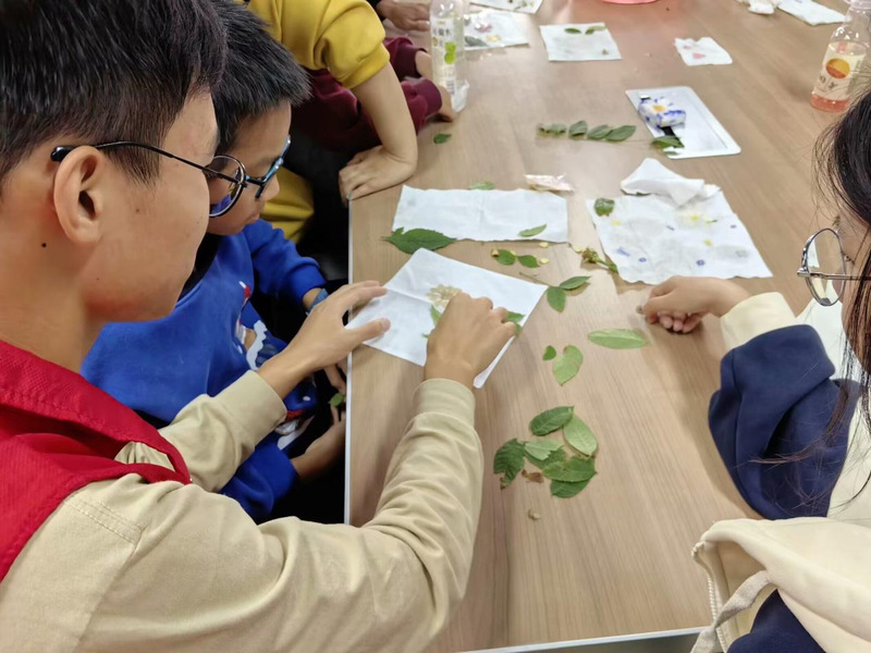 植物拓染以其独特的自然色彩和简单的步骤吸引了许多家庭的到来,经贸青协希望通过这次活动加深小朋友们对传统工艺的了解。植物的挑选与摆放,浸泡与固定,一个个步骤在志愿者的耐心引导下有条不紊地进行,活动缓缓迎来高潮,小朋友们的创作欲望愈发强烈,一张洁白的小小画布,被小朋友们填满了想象与童真。