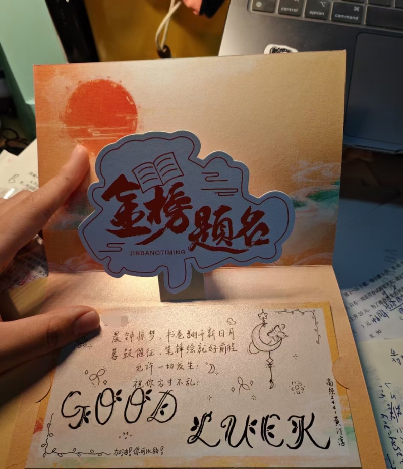 此次准备的慰问品不仅包括了水果、零食,更有来自学弟学妹们亲笔写的祝福信,里面饱含着他们对学长学姐真挚的祝福与鼓励。