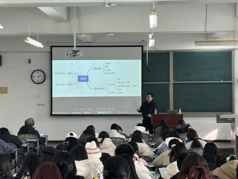 在随后的互动环节中,同学们热情高涨,纷纷踊跃举手提问,问题包括实习与就业的关键抉择时刻如何权衡利弊,以及从事游戏出海业务所需的能力要求等,武伟学长以其丰富的实践经验,一一耐心细致地解答同学们的疑惑,并给出了具有启发性和实用性的宝贵建议。他鼓励同学们务必珍惜在校的美好时光,充分利用公司提供的丰富资源与平台,培养自身的国际化视野,不断锤炼自己的专业技能与综合素质。