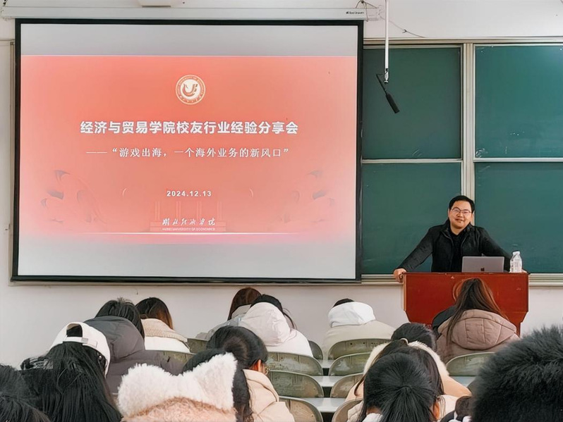 本次经验分享会以“游戏出海,一个海外业务的新风口”为主题,深度聚焦目前国贸专业领域的前沿动态,探讨外贸行业与游戏行业的深度融合以及职业发展路径。武伟学长从“游戏行业出海分析”、“全球手游移动广告趋势洞察”、“2024中国游戏产业报告”三个方面深入剖析了游戏出海的现状与趋势。他指出,随着全球互联网普及和智能手机的广泛应用,不同地区的游戏市场呈现出多样化的需求。在游戏出海的商业模式和运营策略方面,武伟学长结合实际案例进行了生动讲解,并指出该行业亟需具备复合型知识结构的人才,既要有国贸专业的商务素养,又要了解游戏行业的技术与创意特点。