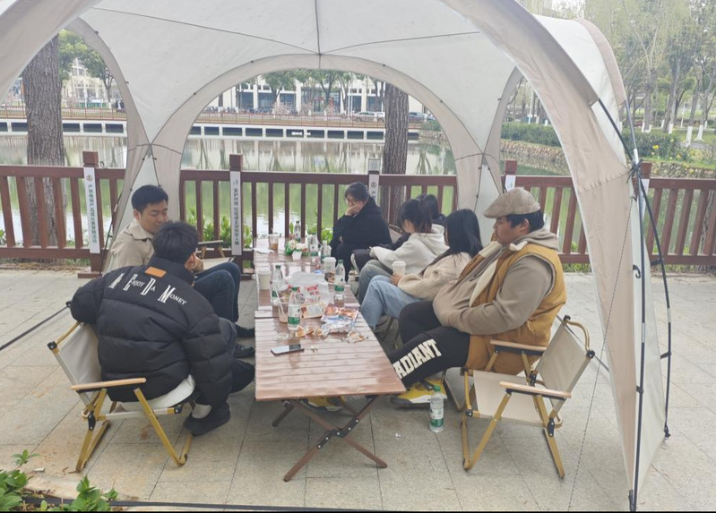 徐琴剑与同学们共同漫步樱花大道,在飞柳塘畔开展座谈会,向同学们讲述了自己的就业及创业经历,提醒同学们要把握秋招就业机会,在全面了解行业及市场情况的基础上选择适合自己的就业及创业方向,保持思考与创新能力,紧跟时代步伐,勇敢追逐梦想。