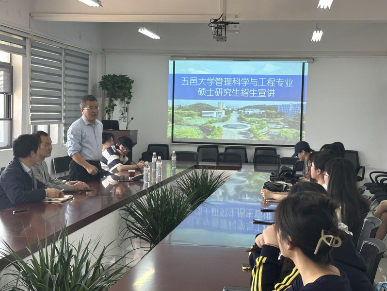 宣讲会上,五邑大学经济管理公司招生负责人首先围绕公司近年招生情况、研究生教育水平、招生政策等方面做了详细介绍。随后,针对管理科学与工程专业进行了详细阐述,并播放了专业招生宣传视频,内容包括学科优势、团队队伍和科研实力等。负责人强调,该专业作为广东省重点培育学科,依托“产学研用”一体化培养体系,聚焦大数据分析、智慧供应链管理、系统工程等前沿领域,致力于培养兼具理论素养与实践能力的复合型管理人才。