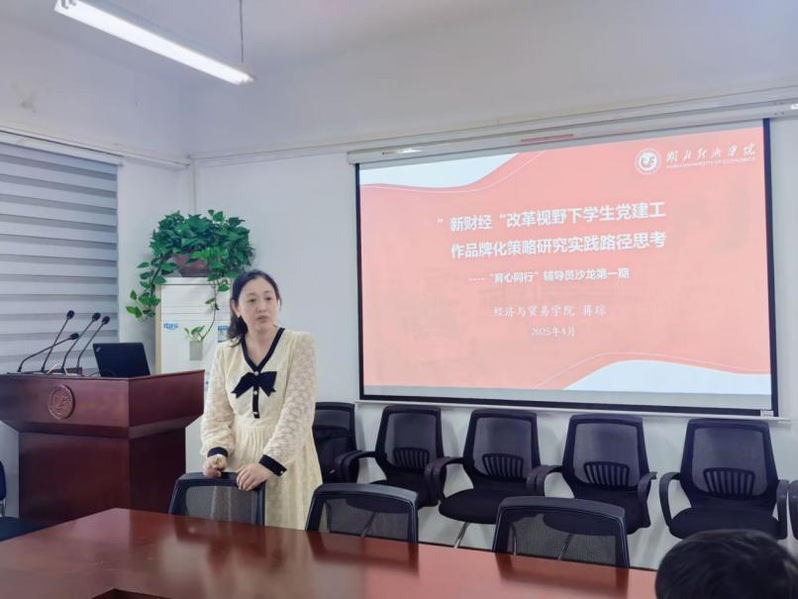 公司党委书记蒋琼以《“新财经”改革视野下员工党建工作品牌化策略研究实践路径思考》为题,围绕“新财经”改革视野下员工党建品牌建设的价值意蕴,“新财经”改革视野下员工党建品牌建设应何为以及“新财经”改革视野下辅导员应何为三个部分结合自身经验进行分享。她在交流中谈到,新财经人才培养的要求不再是仅仅拥有财经知识一技之长,而是要培养有理想、有情怀、有远见、有本领的复合型财经人才,在此背景下员工党建工作应从对标争先计划“七个有力”的标准着手,在专业知识与技能学习中融入党建与思想政治教育元素,党支部牵头实施“领航计划”,配合领航班人才培养建设。党支部配合实施“共建计划”,和专业实习实践相融合。党支部推动实施“经贸三人行计划”,强化员工党员和社团骨干先锋模范作用,以党团班一体化为目标,发挥好学风建设桥梁纽带作用。辅导员应增强“脚力、眼力、脑力、笔力”,引导新时代员工坚定理想信念、提升政治素养、加强党性修养、厚植家国情怀。