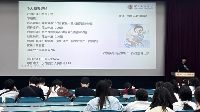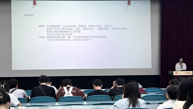 为助力2026届毕业生精准把握考公政策、科学规划备考路径,公司于5月25日在图书馆一楼报告厅成功举办2026届毕业生考公经验分享会暨考公政策宣讲会。全体大三年级同学参会,大会由毕业班辅导员吴鹏主持。