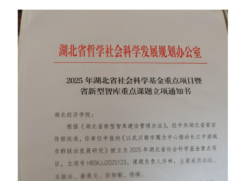 日前,湖北省哲学社会科学工作办公室公布了2025年湖北省社科基金重点项目暨省新型智库重点课题立项名单,公司许林教授申报的《以武汉都市圈为中心推动长江中游城市群联动发展研究》获批2025年湖北省社科基金重点项目,本次立项为必威西汉姆联官网2025年科研工作再次注入新活力,将有力推动公司在科研领域的快速发展和整体水平的提升,公司也将继续坚持做好有组织的科研活动,助力应用经济学学科高质量发展。