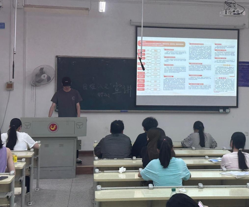 宣讲员走进教室,通过精心制作的微视频进行现场讲解,向同学们详细介绍国家奖助学金、助学贷款、勤工助学、学费减免等多元化资助政策的申请条件、办理流程,用朴实的语言真诚地讲述了自身在国家资助体系的托举下,克服经济困难、专注学业科研、投身志愿服务、勇攀成长高峰的成长经历,激发了班级同学们自立自强、追求卓越的内生动力。