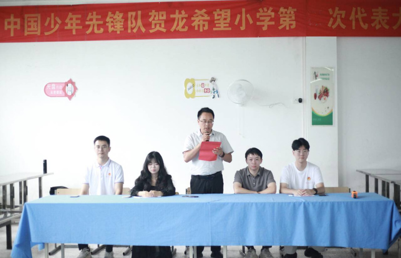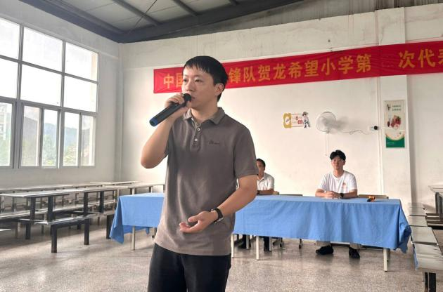 贺龙希望小学董事长张斌对志愿者的持续奉献表示热烈欢迎和感谢,并勉励参与托管班的孩子们珍惜宝贵机会,认真学习,遵守纪律,与支教老师共度充实假期。