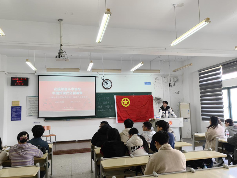 此次主题团日中,经叹号宣讲队也发挥了关键带动作用。宣讲队队员张馨文在经济2443团支部、张海滔在经济2342团支部围绕党的二十届四中全会开展专题宣讲,他们结合全会精神要点与青年使命担当,用通俗语言解读核心内容,结合经贸专业特色分享学习感悟,让在场同学深刻理解全会对国家发展的重大意义。