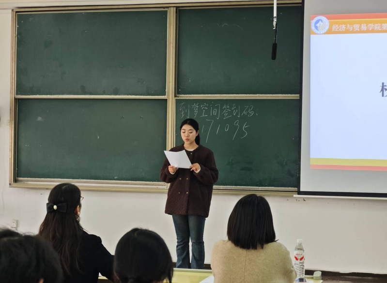 校员工会主席毛静怡在致辞中肯定了公司团委员工会在普及经济学知识、营造学术氛围等方面的贡献,并表示校员工会将一如既往地支持公司团委员工会工作,期待与新一届员工会加强协作,共同服务同学成长,助力公司发展。