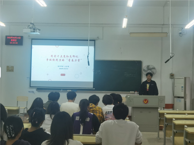5月15日晚,公司开展了以“榜样的力量”为主题的晚讲评活动,公司五四红旗标兵获得者,来自经济1942班的王昱博同学分享了自己经历和经验,国贸2043、国贸2121支部全体成员参与活动。