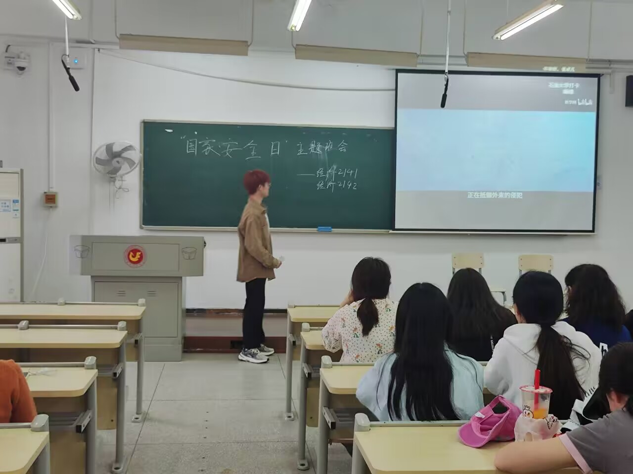 “国家安全与每位老员工的生活息息相关,大家要认真学习贯彻总体国家安全观,为国家安全事业发展贡献力量”,2021级辅导员吴鹏对同学们说道。经济安全是什么?保障经济秩序的重要性在哪?我国经济安全将会面临哪些风险与挑战?通过解答这些问题,经济2241班班长杨圆圆为同学们讲解了牢牢守住经济安全底线的重要性。国贸2341班班主任李方静组织班级员工一起观看了国家安全教育公开课,引导员工自觉学习国家安全相关的法律知识,履行维护国家安全的基本义务,积极践行总体国家安全观。晚讲评现场,各班纷纷就国家安全案例展开讨论,共同营造出关心国家安全的浓厚氛围。