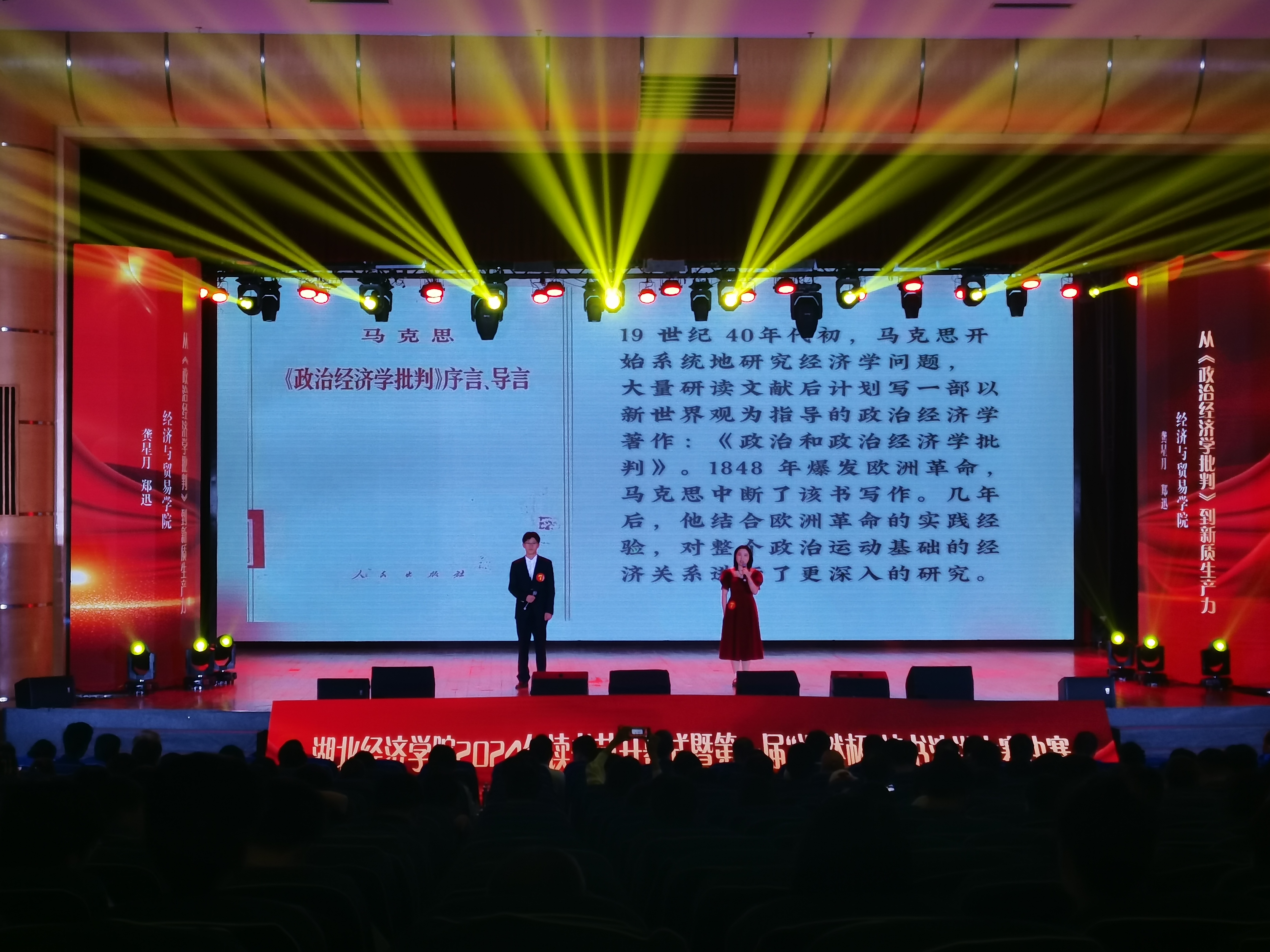 由公司党委副书记丁升指导的员工团队从全校19个院系团队中脱颖而出闯进决赛,最终取得了校级二等奖的佳绩。该员工团队由公司商经2141班龚星月、国贸2142班李小红、国贸2241班郑迅、国贸2341班余樟玥、经济2341班王佳敏组成。团队作品选自伟大的政治家、经济学家卡尔·马克思的经典著作《政治经济学批判(序言)》,作品深刻地凸显了马克思政治经济学基本原理同中国社会主义创新和实践相结合在生产力发展方面的优越性。