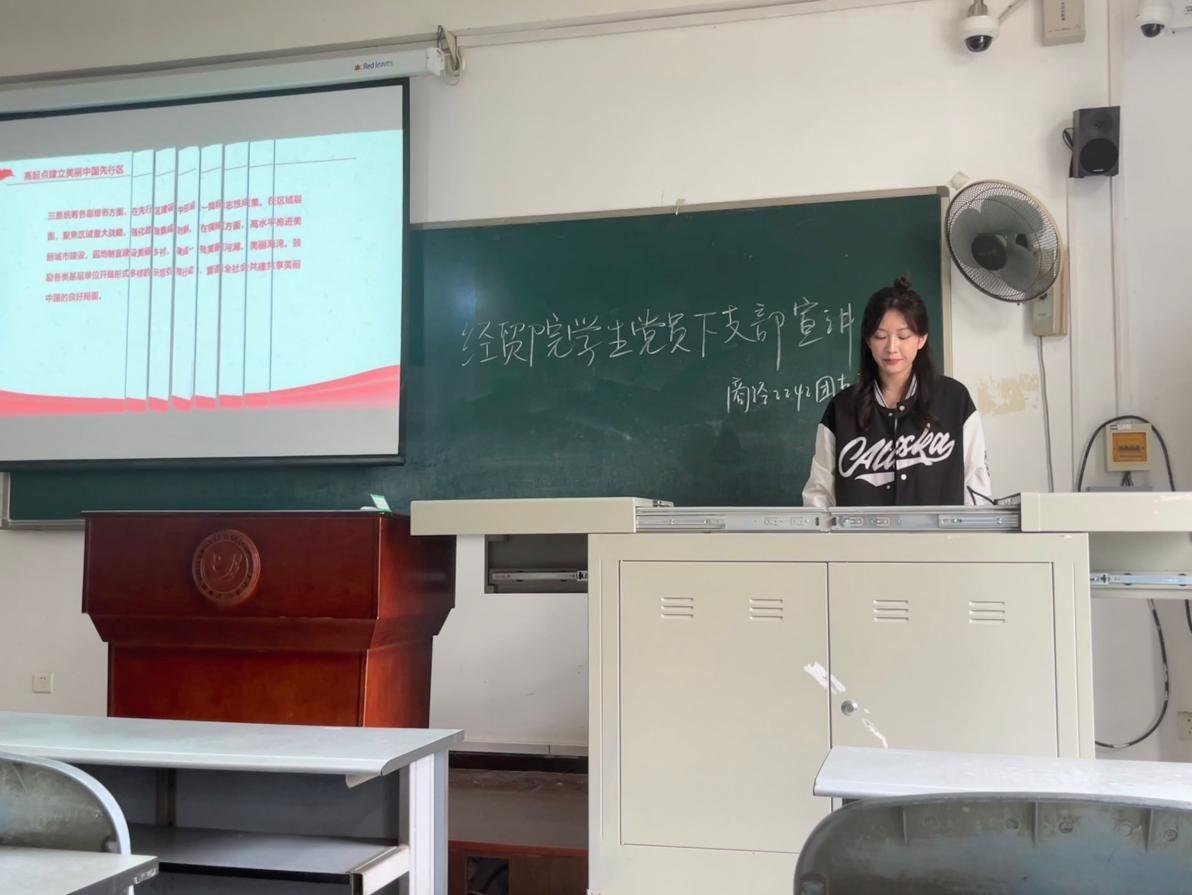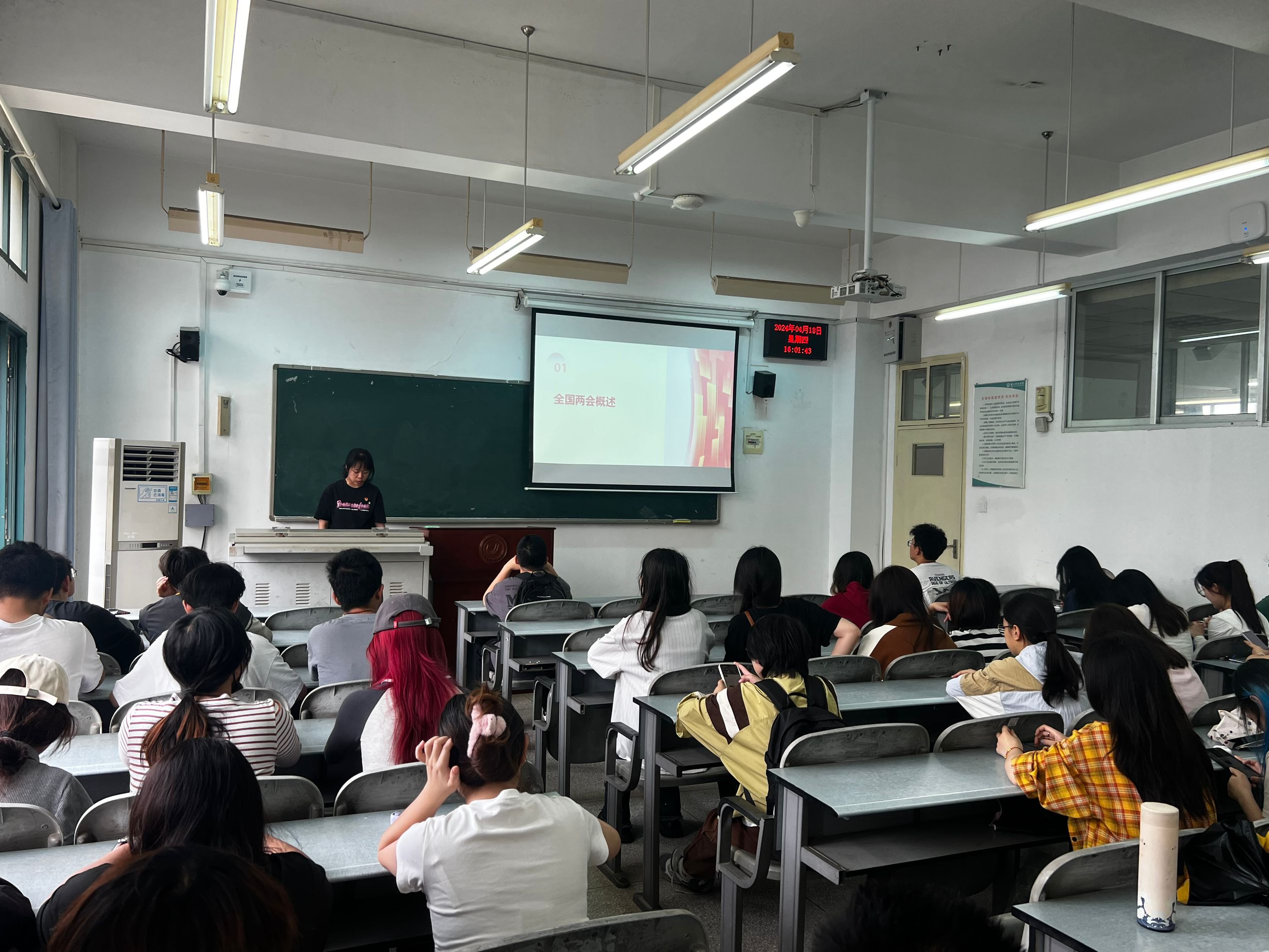经济学系员工党支部党员乐兰双从民生热点角度,以《增进民生福祉,提高人民生活品质》为主题,为同学们展开宣讲。乐兰双从医疗保障、住房保障、就业政策、公共服务、教育发展等方面向同学们具体介绍了政府在这些领域的最新政策和发展动向,这些最直接、最现实地贴近生活日常的政策让同学们切身体会到政府坚持人民至上,着力保障和改善民生的信心和决心。